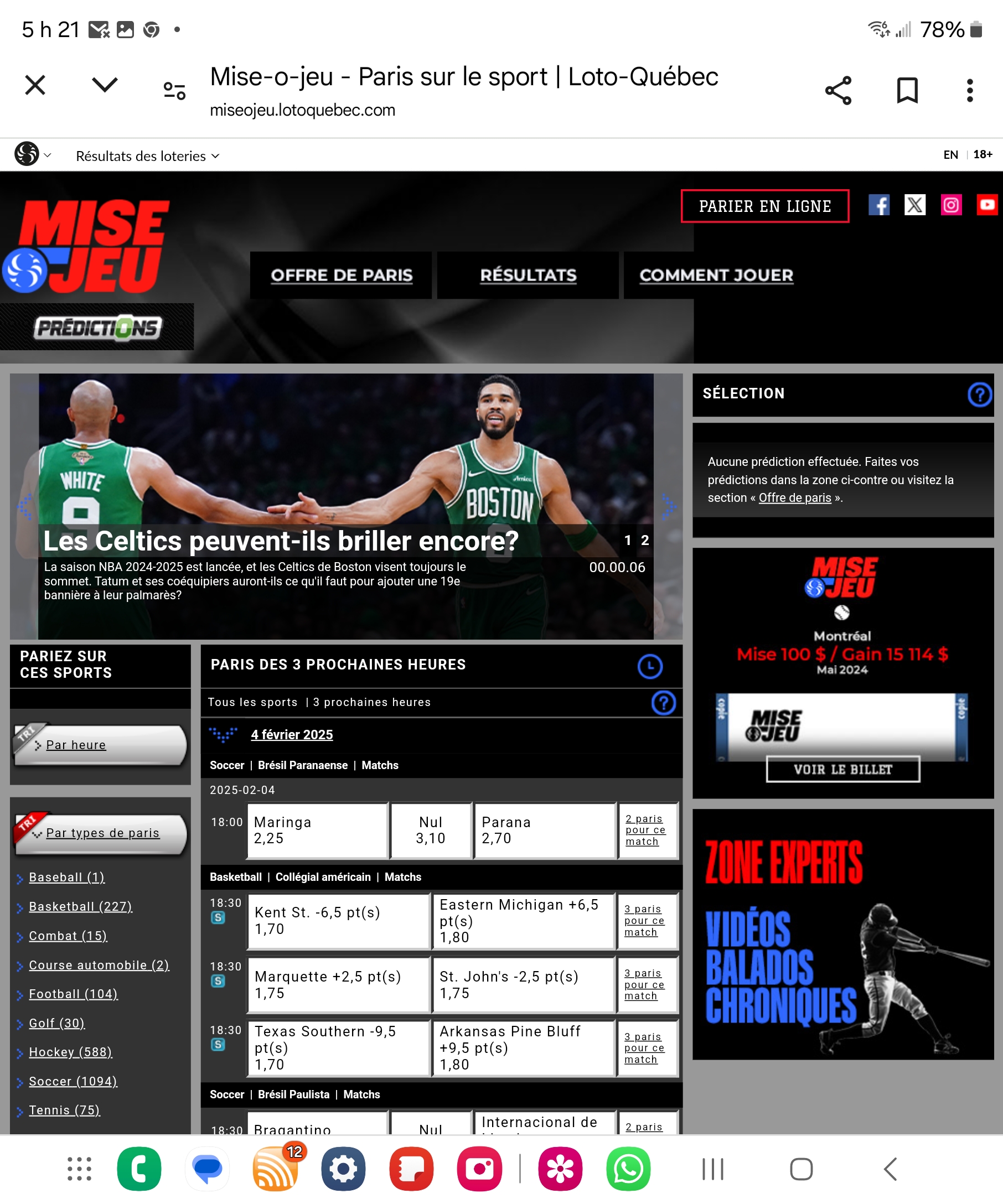 La plateforme de paris sportifs de Loto québec est non seulement une des plus populaires au québec mais elle est garantie par le gouvernement ce qui évite les non paiements de vos gains.